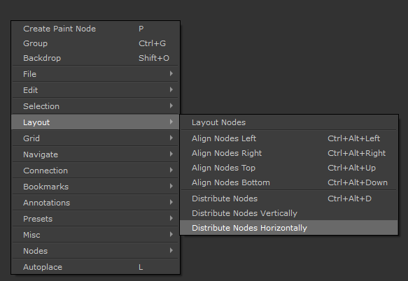 NodeGraph / Right Mouse Click / Layout /