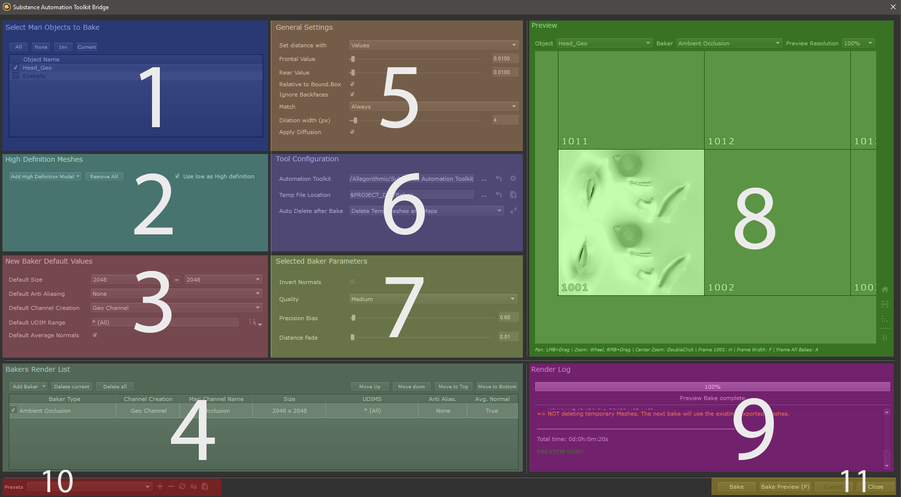 The Substance Baker Bridge User Interface is separated into multiple parts. Please select a subtopic to learn more: