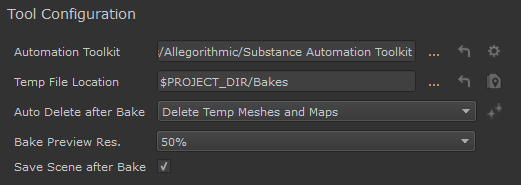 - Substance Automation Toolkit specific settings (path, tool configuration etc.)