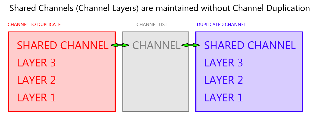 • Channel Layers will be linked to original shared channel and channel duplication is avoided.
