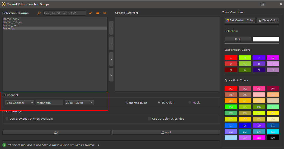 - Material ID from Selection Groups now allows baking to either Material Channels or Geo Channels