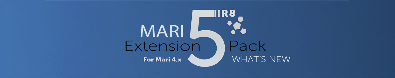 - Extension Pack 5 R8 adds additional quality of life features, mostly aimed at Decal and Locator Workflows, while also improving on compatibility with Mari 4.8