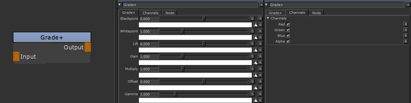 The Grade+ Node is based on Mari's default Grade Node with a few attempts to get it more in line with Nuke's Grade Node.