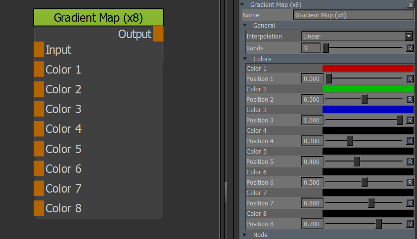 The Gradient Map Node is a workaround to Mari's lack of proper Ramps/Gradient.