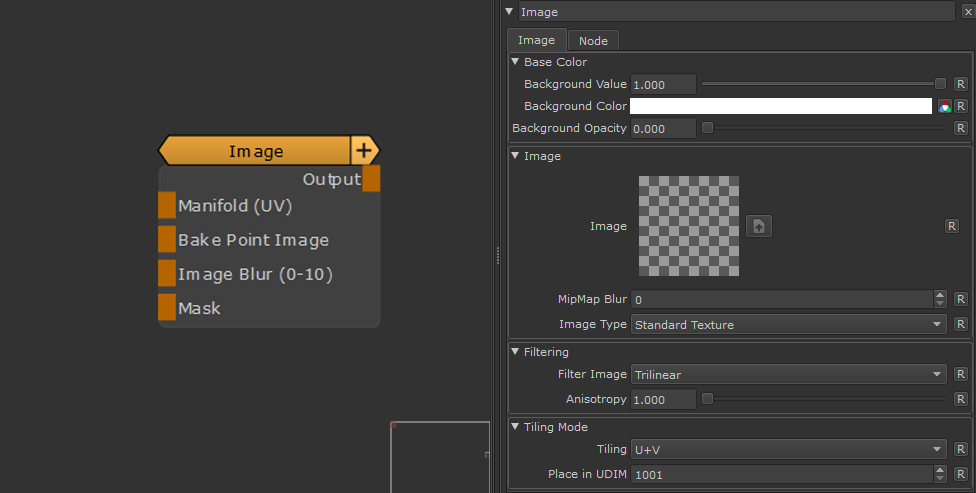 If an input is attached to the Image Blur Port of the Node, the value of the Mipmap Blur slider and the Image Blur Port Input will be added together. |