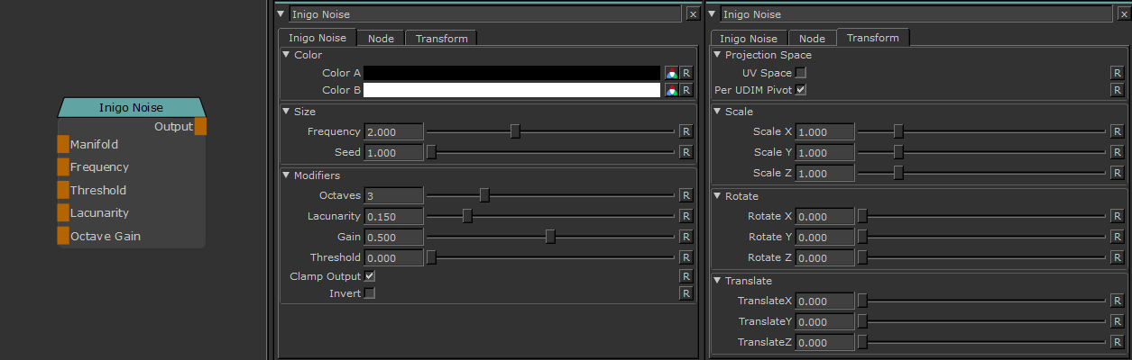 Will apply an offset in X,Y or Z to your noise. When UV Space is turned on Translate Z is ignored.