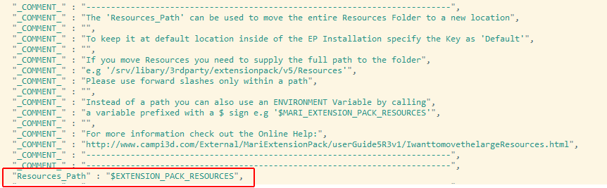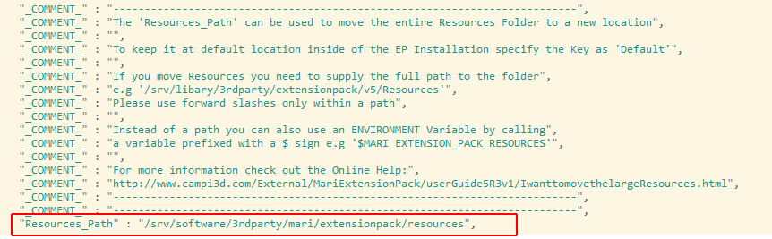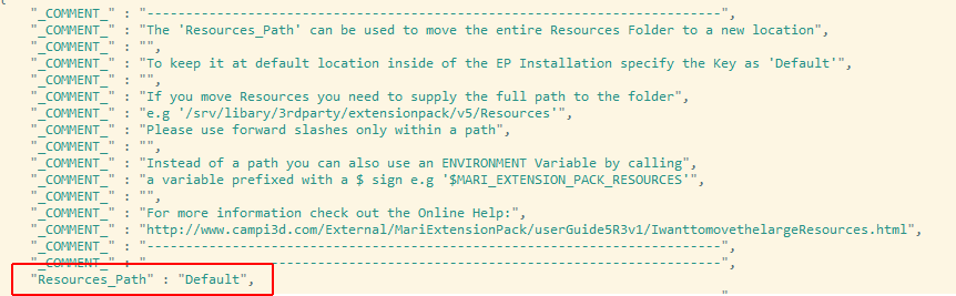 - Inside the 'ResourceLocator.json' File modify the Resources_Path key by changing its value from "Default" to for example the