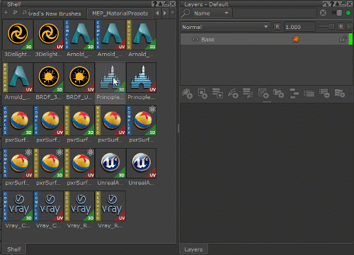 - In the Layer Palette drag and drop a preset from the Shelf into the Layerstack