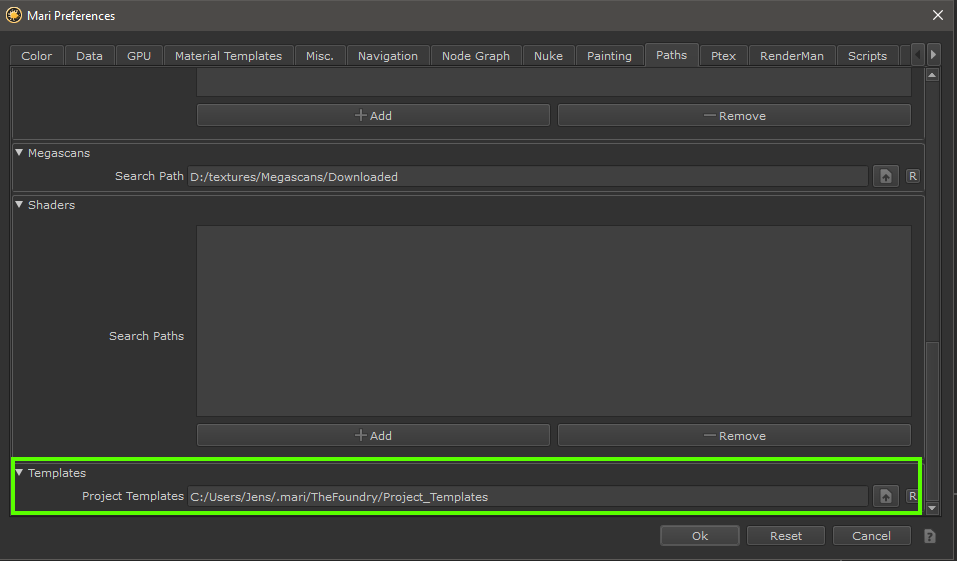 By default the Template Save path will be located in the same location as your mari configuration files.