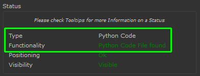 Once the dialog is confirmed and the script editor is not empty the Status Group in the Button Settings will display the successful assignment