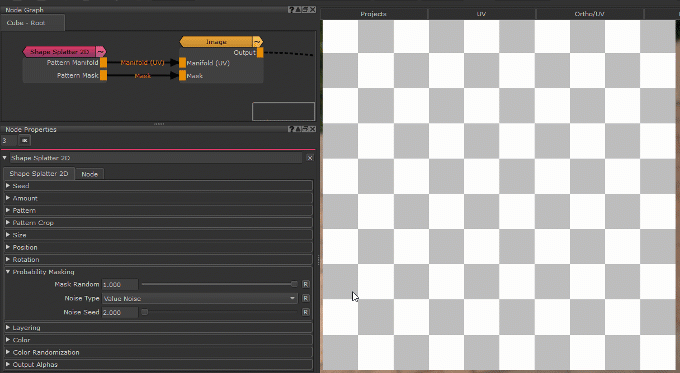 Designed for creating random patterns, Splatter nodes allow Texture Bombing using a procedural shape