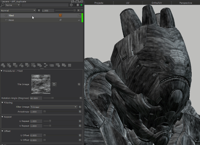 Swap Layer Type allows the swapping of one Layer Type for another e.g. a 'Tiled' Layer for a 'Triplanar',