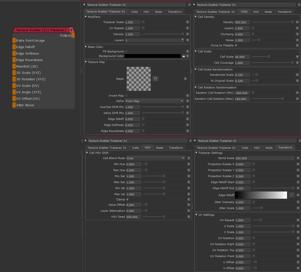Allows you to overwrite the Edge Falloff Attributes of the Texture Maps in the Scatter with a Node Connection