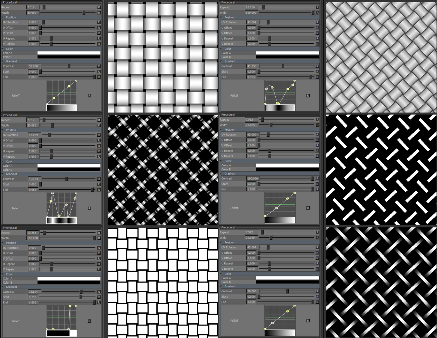 Weave is similar to Maya's 'Weave' texture, creating a fabric pattern.