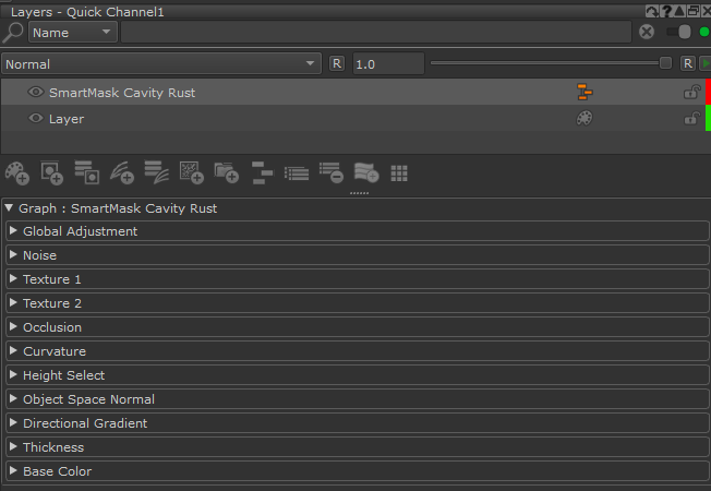 Example if Smart Mask Properties in the Layer Stack. Displayed in a Version larger than Mari 4.2