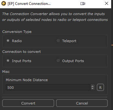 The "Convert .." options allow you to quickly convert the input or output connections of one or multiple selected nodes to use Radio Nodes or Teleport Nodes.