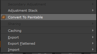 Convert to Paintable is an improvement on Mari's identically named option but allows for multi layer selection / conversion.