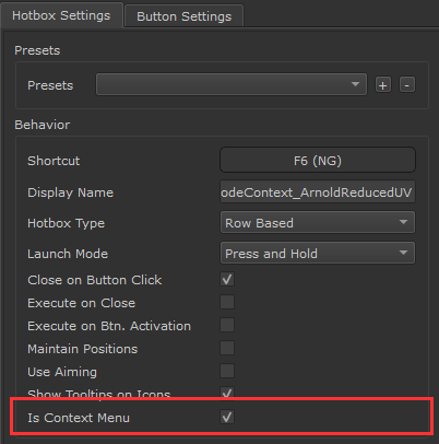 Once you are happy with the look and functionality of your hotbox, ensure the "Is Context Menu" option is ticked on.