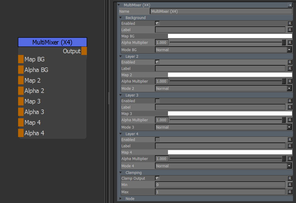 Outputs either combined displacement or mix mask and works best when outputting 16/32 bit displacement maps.