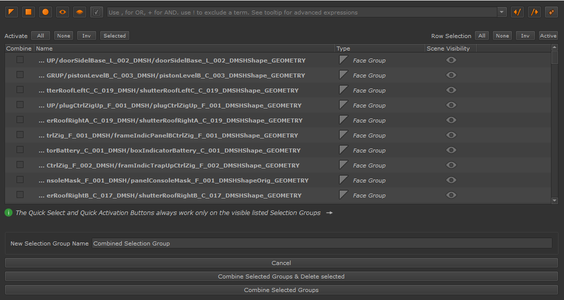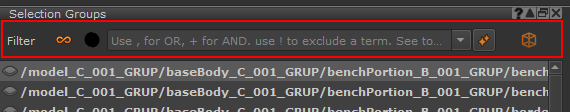 The new toolbar offers a vast array of Filtering Options to control what Selection Groups should be visible - indispensable when working with large amount of Selection Groups.