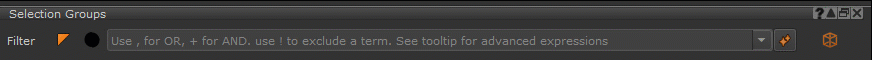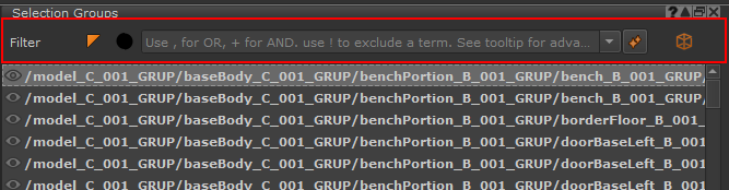 Entering Expressions and word searches will be the main way you interact with the visibility filter toolbar, to control what Selection Groups are made visible.