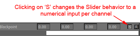 Clicking on the 'S' button next to the slider will change the Interface to allow you a numerical input
