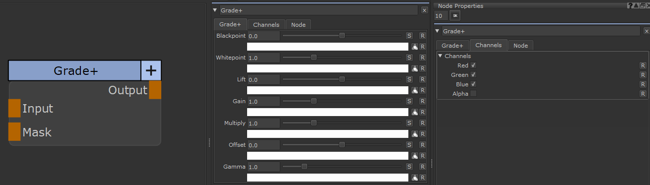 The Grade (Masked) Node is based on Mari's default Grade Node with a few attempts to get it more in line with Nuke's Grade Node.