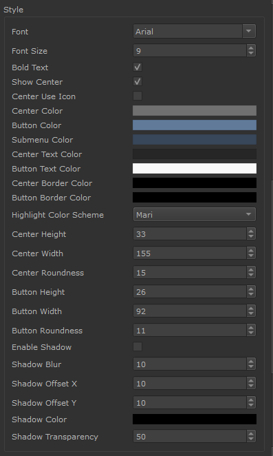 Radial Hotboxes come with a set of specific options on top of the general behavior and preset options