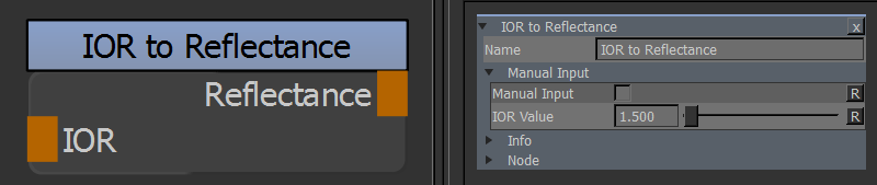 For example an IOR or 1.5 equals a reflectance value of 0.04 or 4% reflectance.