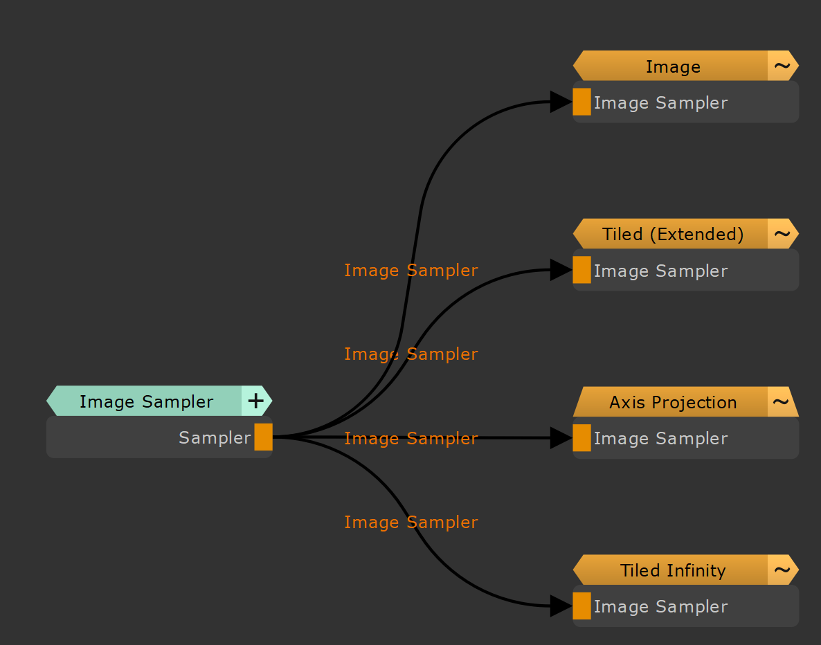 Image Sampler Nodes are designed to modularize the use of images in the Nodegraph by allowing you to feed the output of the Image Sampler node into other Nodes that support an Image Sampler Input.