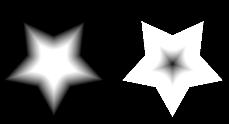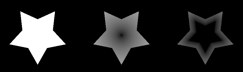Example of the same polygon with different Gradients. (Left) Gradient Disabled (Center) Gradient Radius = 0.1 (Right) Gradient Radius = 0.25
