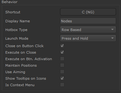 The Launch Mode determines how the Hotbox reacts to being launched by a Shortcut