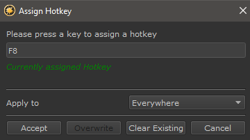 Set the Shortcut for the currently selected Hotbox
