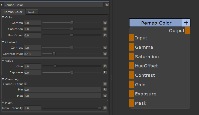 The RemapColor Node is a powerful Color Correction Node, giving same results as alRemapColor Node for Arnold (part of alShaders by Anders Langlands).