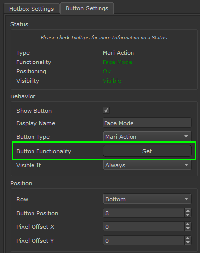 Once the a submenu is selected the Status Group in the Button Settings will display the target Hotbox Name