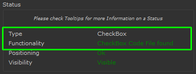 If your Button Type specifies the type 'Checkbox clicking the Button Functionality Button launches a dialog to insert your python code to:
