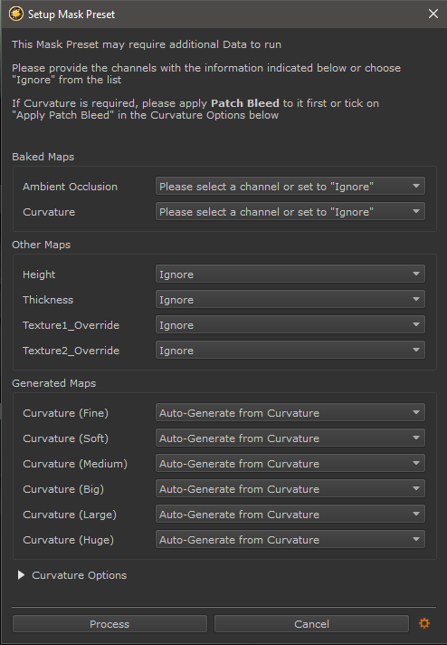 By default the Dialog will look for a channel called 'Ambient Occlusion' and 'Curvature Highpass'.