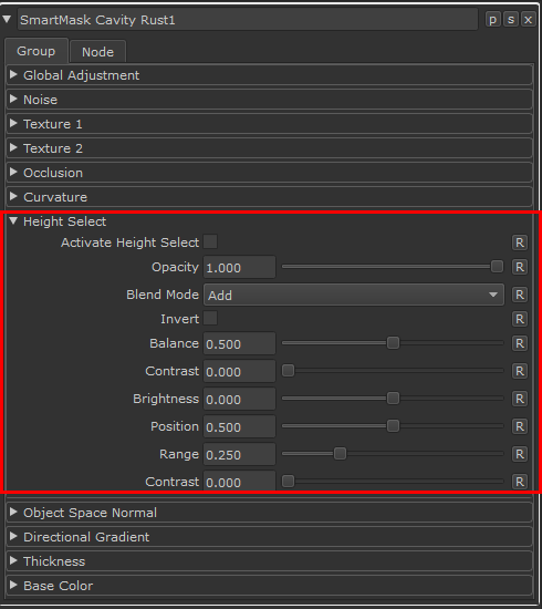 Height Channel based Masking can be controlled in the Height Select Section of Smart Mask Nodes
