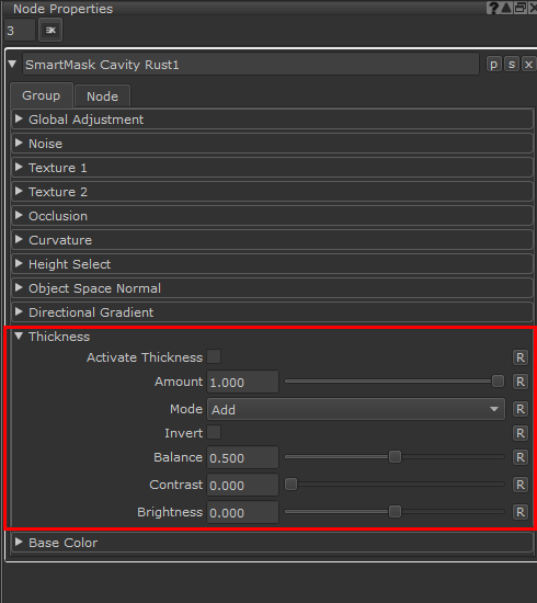 Thickness Channel based Masking can be controlled in the Thickness Section of Smart Mask Nodes