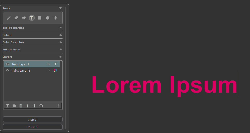 Paint Layers can hold pixel data created or modified by the Paint Brush Tool, Eraser Tool and Arrow Tool.![]()