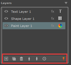 Paint Layers can be automatically created by tools or manually via the Layer Control Buttons at the bottom of the "Layers" Group