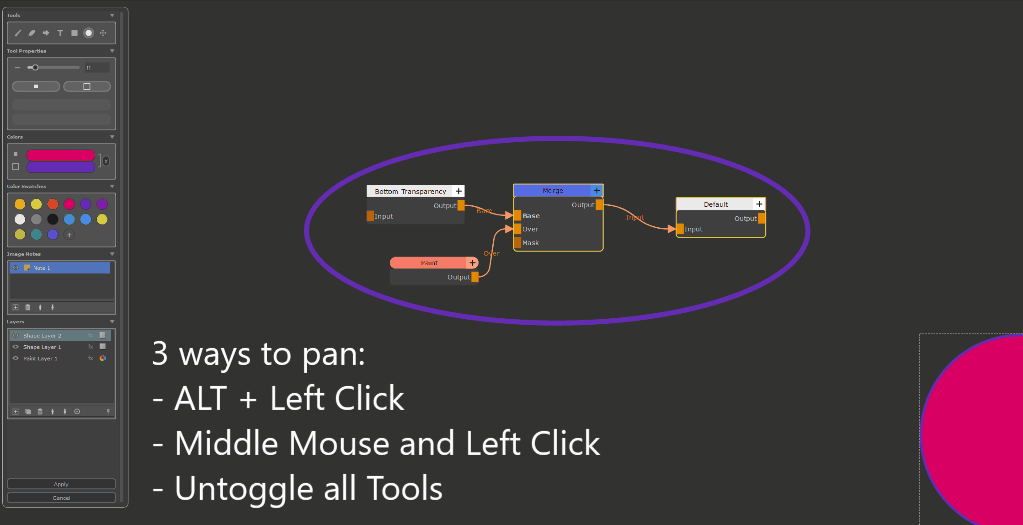 A new Menu will overlay the Nodegraph and the Nodegraph itself will be turned into a paint canvas