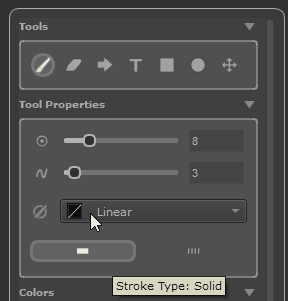 The Brush type can be used to switch between a solid stroke and a "dashed" one.