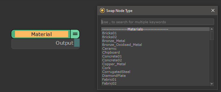 Materials from the Shelf Palette will be shown as swap target options, if the selected source node is a material