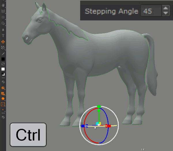 The Stepping Angle determines the increments Mari rotates and moves the Gizmo in, when CTRL is pressed down.