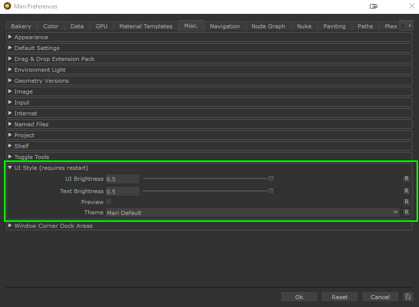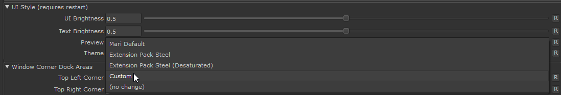 Changes to the User Interface Style require a Mari Restart to take effect |