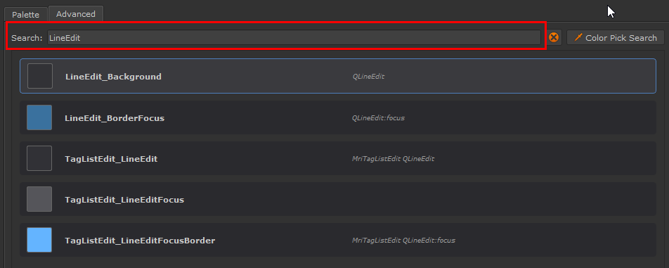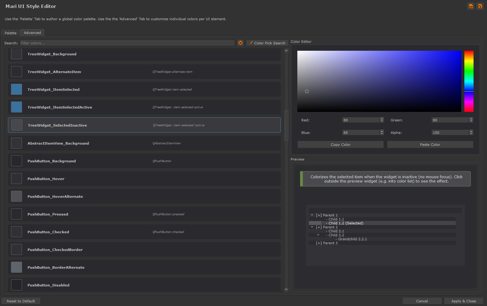 The "Advanced" Tab allows you to dig into the Style of Mari and adjust items and their different states on a per Element level.