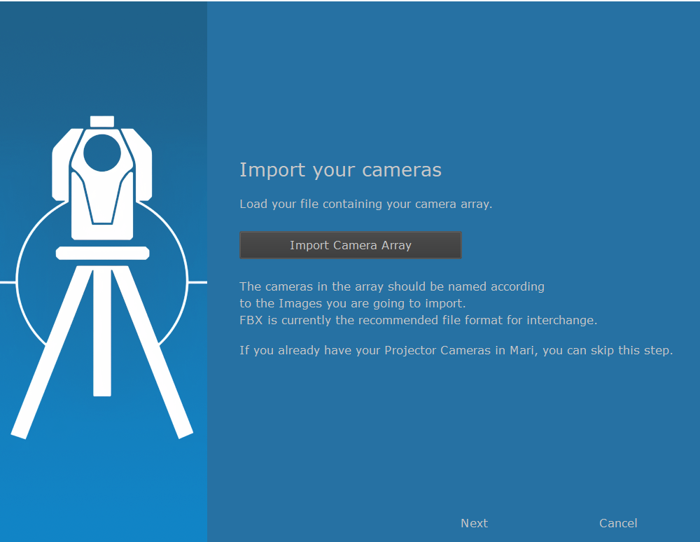 •Setup Cameras (Projectors) with matching Images, correct DImensions etc. in the Mari Projectors Palette
