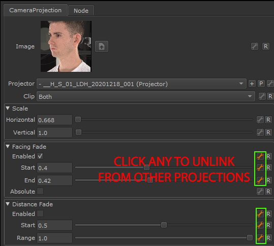 Example of an automatically created live projection setup, including camera projections, paintable Masks, Grading options etc.