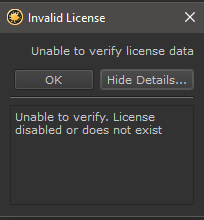 "Unable to verify. License disabled or does not exist" Message during activation |